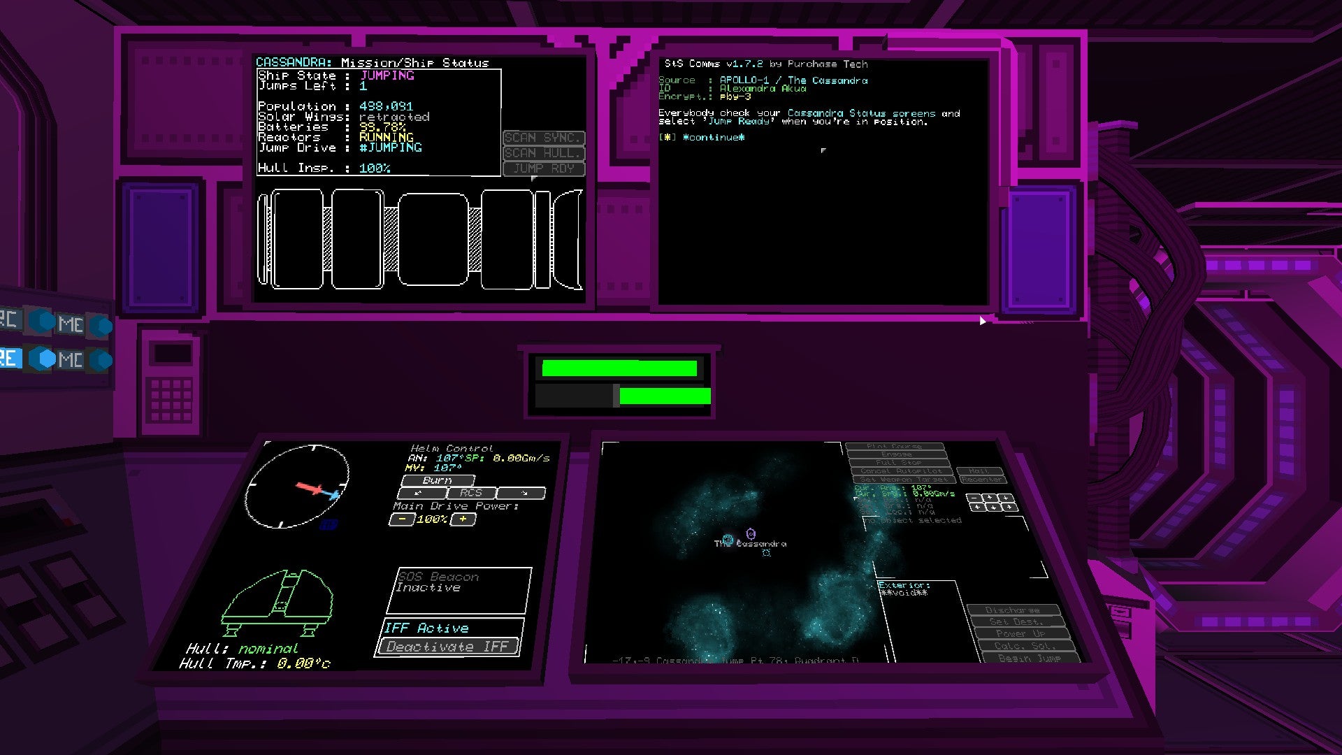 You can't do anything on one screen in Objects in Infinite. It'southward not a space game like Aristocracy: Unsafe or Star Citizen, where you sit in a sleek cockpit with every control at your fingertips. In Objects in Infinite you lot have to get up and move around. The map is on i terminal, comms on another, emails another, battery management some other, repairs another... It'southward as if you're flying an sometime submarine, where in that location are different panels and buttons for everything. Only here, you do information technology all alone.